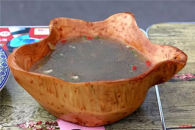 灵芝入菜是最近两年的事。灵芝又称林中灵、琼珍,性味甘平,归肺经、心经、脾经、肾经,主治虚劳、咳嗽、气喘、失眠、消化不良、恶性肿瘤等;老鸭肉有滋阴补虚、利尿消肿的作用,特别适宜夏秋季节食用。金寨灵芝已经形成产业化规模,原料充足。花娘子山土产老鸭肉质鲜美,瓦炉文火慢炖3个小时以上,香醇浓郁,入口即化。独具创新意识又色鲜味美,果然名不虚传。